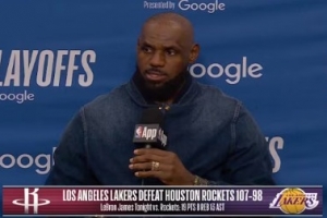 体育资讯4月19日讯 NBA季后赛首轮G1,湖人107-98力克火箭。赛后,詹姆斯接受了采访,以下为采访全文。